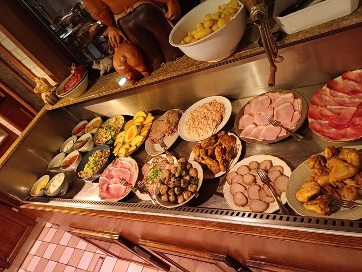 Bij ’t Oud Kerverijtje staat een uitgebreid warm en koud buffet centraal, aangevuld met streekgerechten, ambachtelijke vleeswaren en verse soepen. Daarnaast kun je kiezen voor een BBQ op de Oklahoma BBQ met diverse grillbereidingen, waaronder de geliefde Côte à l’os. Voor kinderen is er een eigen menukaart beschikbaar en buiten vinden ze een speelweide. De drankenkaart biedt een selectie streekbieren en wijnen die goed aansluiten bij het buffet of een ontspannen borrelmoment.