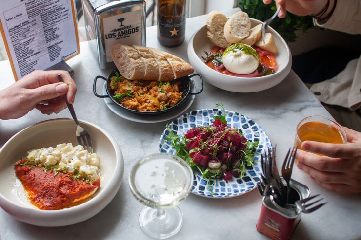 Los Amigos is een echte champañeria en tapasbar waar klassieke Spaanse gerechten centraal staan. Proef jamón ibérico met manchego, gambas al ajillo, patatas bravas, croquetas en dorade van de grill. Ook vegetariërs vinden volop keuze, zoals tortilla de patatas en gegrilde artisjok met romesco. De uitgebreide drankenkaart met Spaanse cava’s, wijnen, bieren en cocktails sluit perfect aan bij de rijke smaken van de keuken.