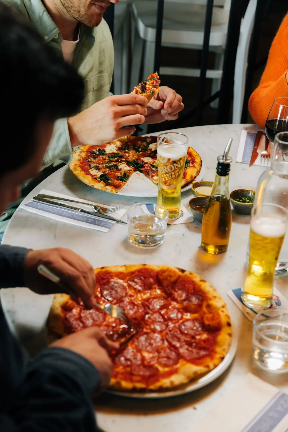 De Pizzabakkers Croeselaan bakt Romeinse pizza’s met een ultradunne, krokante bodem volgens een eigen receptuur. Je vindt er een reeks vaste keuzes én een maandelijkse verrassing, zoals de pittige Diavola met tomaat, mozzarella, spianata piccante, ’Nduja, sjalot en gegrilde paprika. Maak er een borrelmoment van met een frisse cocktail of een Italiaans Peroni-biertje. Voor de kleintjes is er speeldeeg, zodat zij zich ook prettig bezighouden aan tafel.