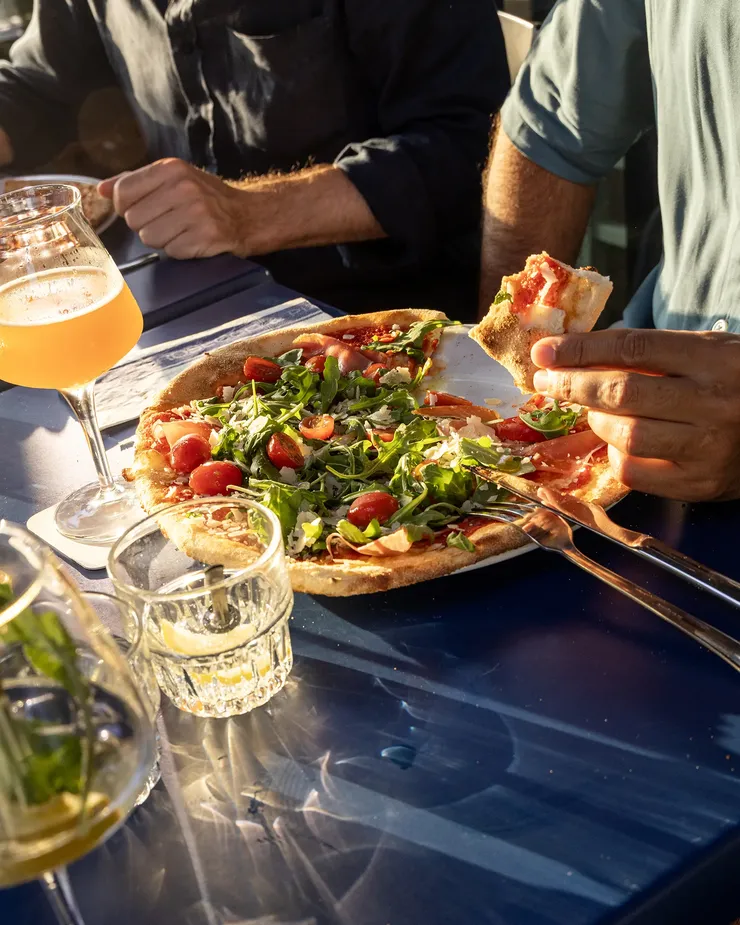 De houtovenpizza’s hebben een dunne, krokante bodem en worden bereid volgens eigen recept. Je kiest uit een vaste selectie en een maandelijkse special, zoals de Diavola met tomaat, mozzarella, spianata piccante, ’Nduja, sjalot en gegrilde paprika. Een glas prosecco of een Italiaans speciaalbier maakt het diner compleet. Voor gezinnen is het extra prettig: kinderen vermaken zich met speeldeeg terwijl jullie rustig tafelen.