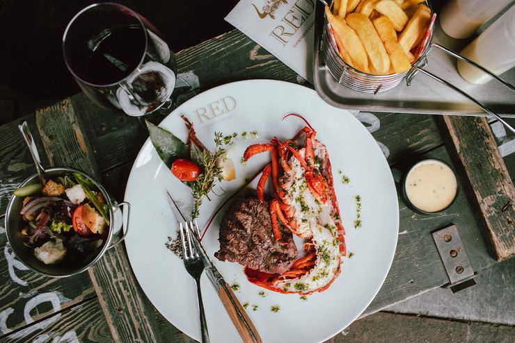 De menukaart van Restaurant RED combineert Franse en internationale invloeden, met als absolute blikvangers tournedos en kreeft. Favorieten zijn onder meer de Surf & Turf, steak tartaar en verschillende seizoensmenu’s van drie tot zeven gangen. Daarnaast wordt er gewerkt met dagverse producten en seizoensgebonden ingrediënten, waardoor er altijd iets nieuws te proeven valt.