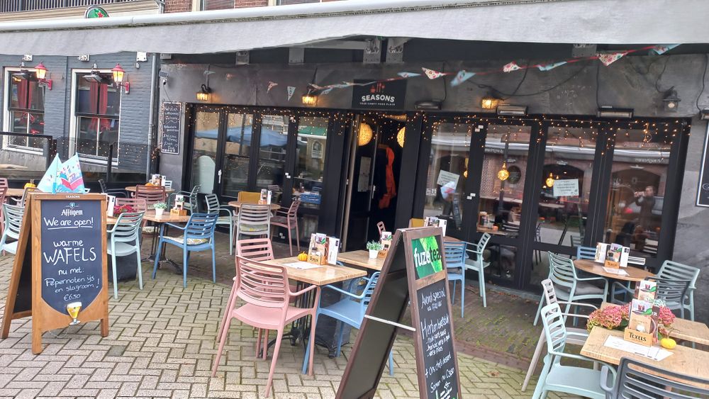 Seasons biedt een gevarieerde menukaart met voor ieder wat wils. Denk aan ambachtelijke stoofpotjes, sappige burgers, maaltijdsalades en rijk belegde broodjes. Daarnaast is er een wisselend menu met seizoensgebonden gerechten. Er wordt graag rekening gehouden met dieetwensen en allergieën, dus geef het gerust aan bij je reservering.